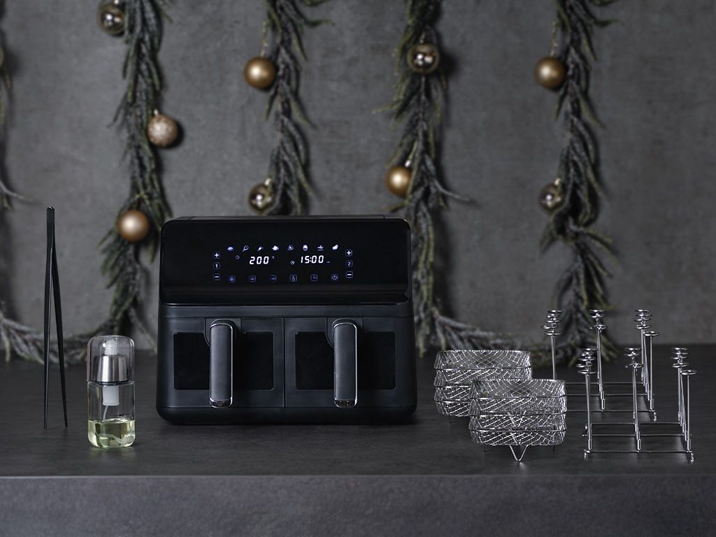 Patatine, pesce o filetto per due, quattro o sei persone o più? La FRIGGITRICE AD ARIA ONYX COOKWARE™ ha una capacità di cottura di 4+4 litri e due cestelli, inserendola nella categoria di grandi friggitrici ad aria.