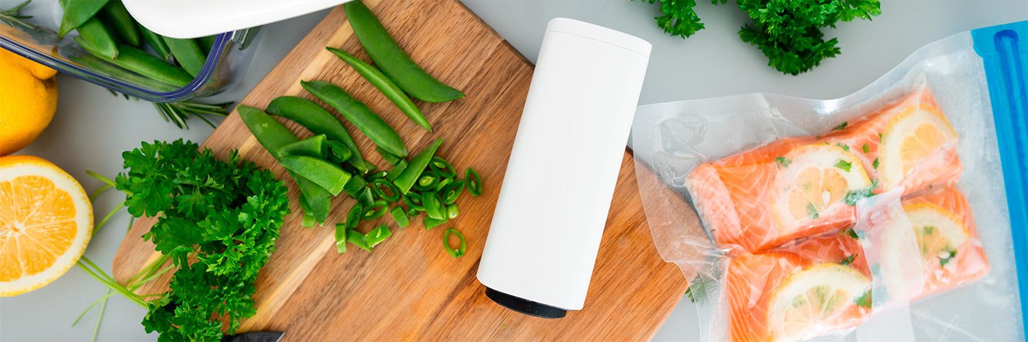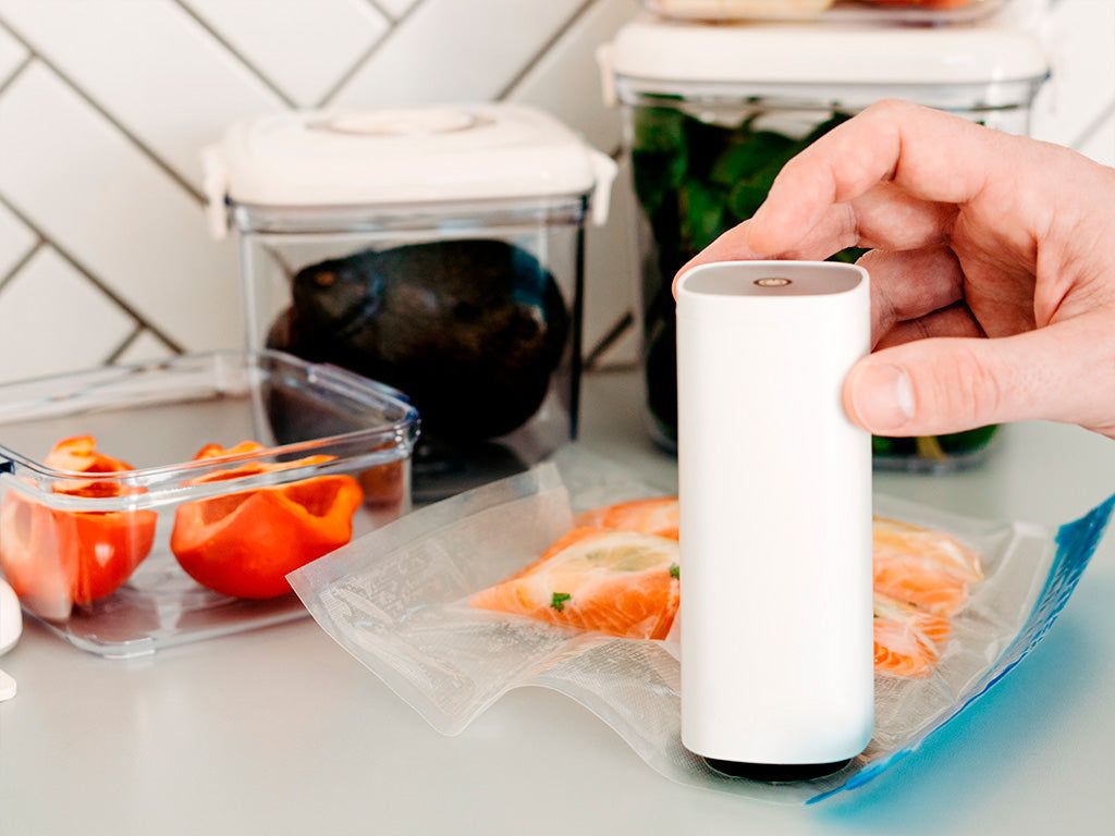 Alcuni di noi hanno provato la sigillatura sottovuoto, dato che è il metodo migliore per conservare più a lungo i cibi, senza congelarli. Comunque, anche quando li si congela, il sottovuoto presenta dei chiari benefici, ma usare una macchina sigillatrice per il sottovuoto tradizionale non è molto semplice. Hai bisogno di un grosso aspirapolvere, devi andarlo a prendere nel ripostiglio e attaccarlo alla presa di corrente. Poi devi cercare i sacchetti sottovuoto, usare l'aspirapolvere per eliminare tutta l'aria e sigillare il sacchetto praticamente sciogliendo la plastica. Abbiamo posseduto un macchinario del genere, ma è finito nel ripostiglio perché era troppo complicato e fastidioso da usare.