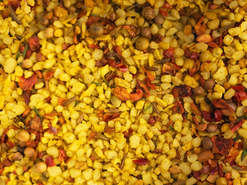 Ingredienti Sale, cipolle, spezie, SEMI DI SEDANO, pepe, curcuma, zenzero, fieno greco, cumino, peperoncino, cumino, coriandolo, peperoncino, pomodoro, maggiorana, erba cipollina, prezzemolo, paprika. Sostanza ausiliaria tecnica: Olio di semi di colza.