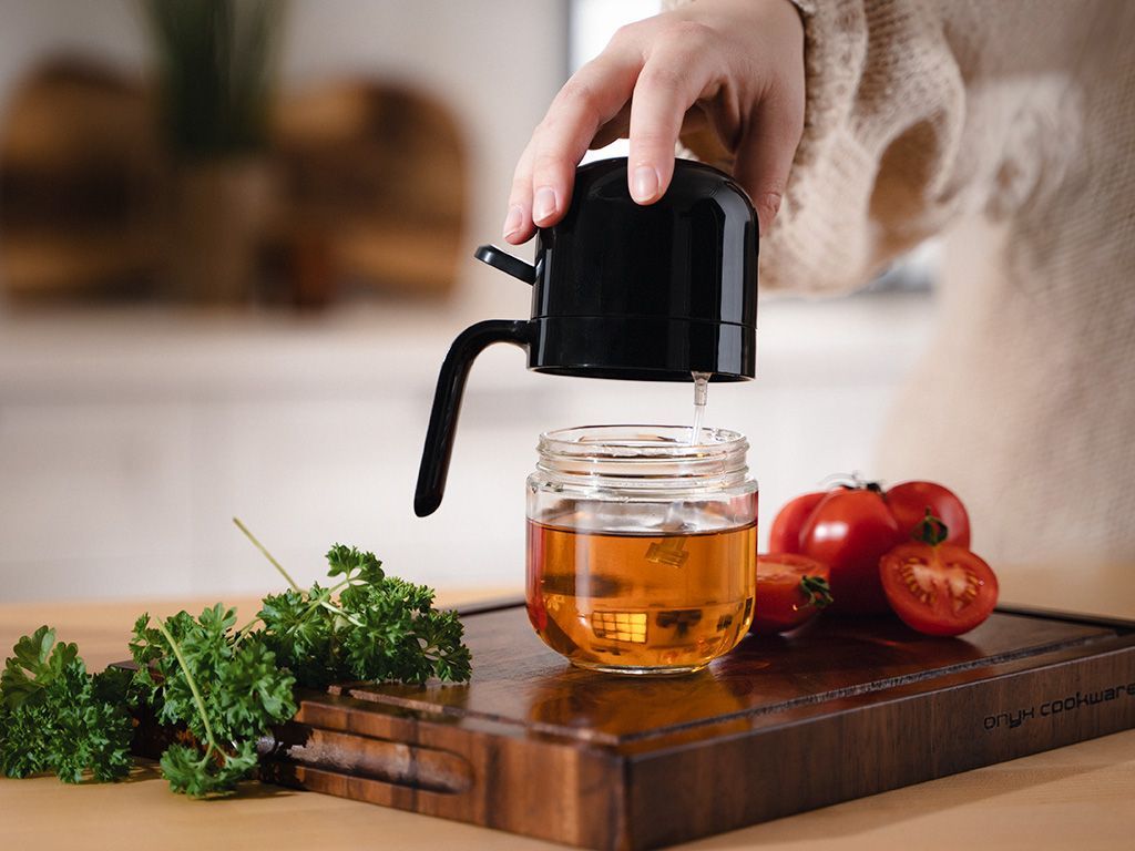 Progettato per la comodità, lo SPRAY PER OLIO ONYX COOKWARE™ – 300ML è sia ricaricabile che compatto. La sua capacità di 300ml è perfettamente dimensionata per un uso regolare pur rimanendo leggero e facile da maneggiare. Passate facilmente tra oli diversi—sia che preferiate olio d'oliva per insalate, olio vegetale per friggere o qualsiasi olio speciale per i vostri piatti gourmet.
